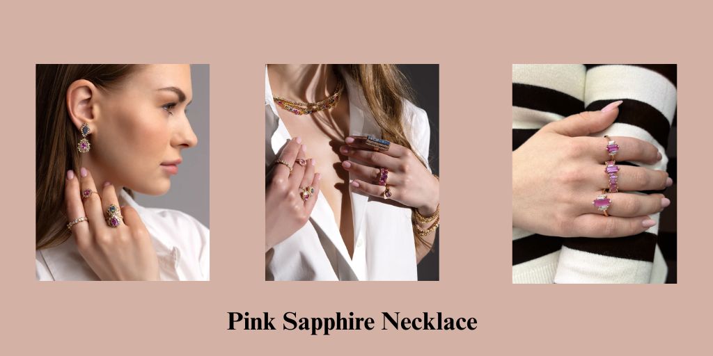 A pink sapphire necklace brings in color without overstating its presence. It adds warmth and visual interest but stays controlled—especially when set in gold or paired with clean diamond accents. Unlike trend-based accessories or overly sentimental jewelry, this piece doesn’t try to look sweet or decorative. It feels composed.
