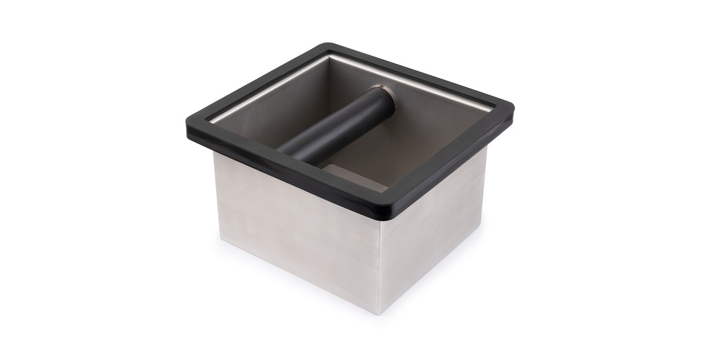 Also sometimes called a knock bin, bash bin, or waste tube, the knock box is usually square or round with a bar that crosses the center at the top of the box. Usually made of either stainless steel or plastic, this bin is used to store all the used espresso grounds.