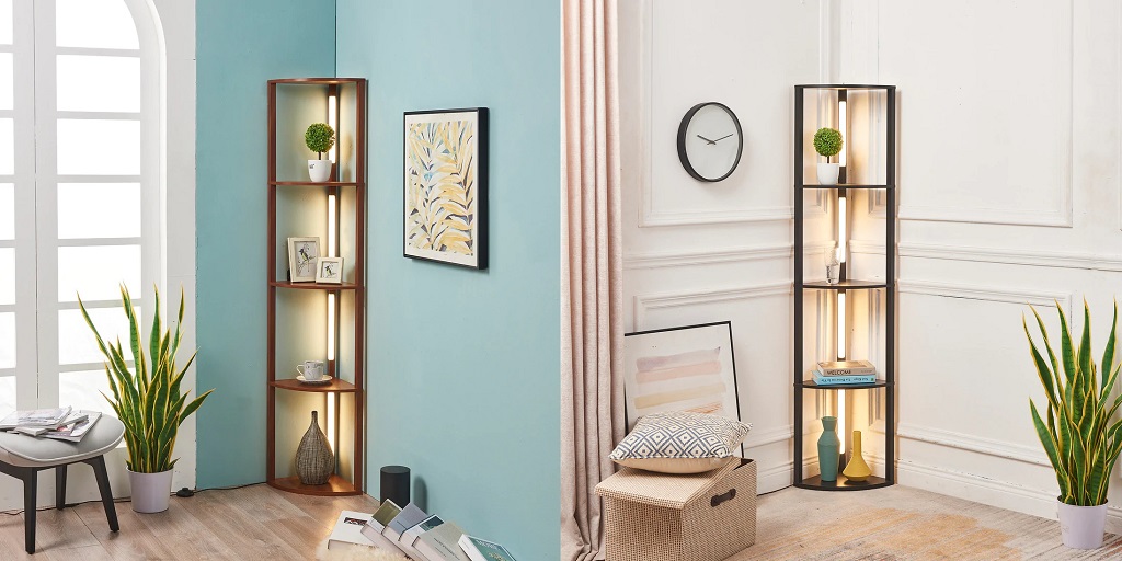 A piece like this is easy to incorporate into just about any room of the house. This type of corner shelf is ideal for those who are seeking a simple and uncomplicated solution to their lighting or decorating needs.